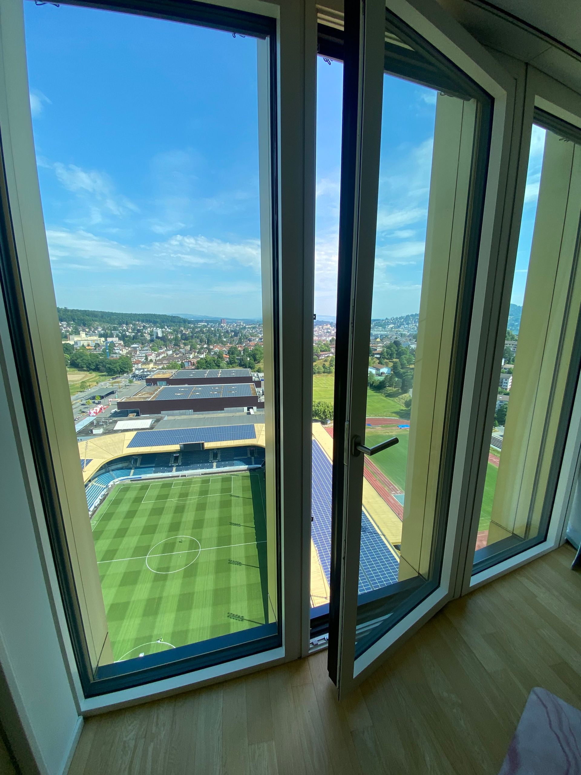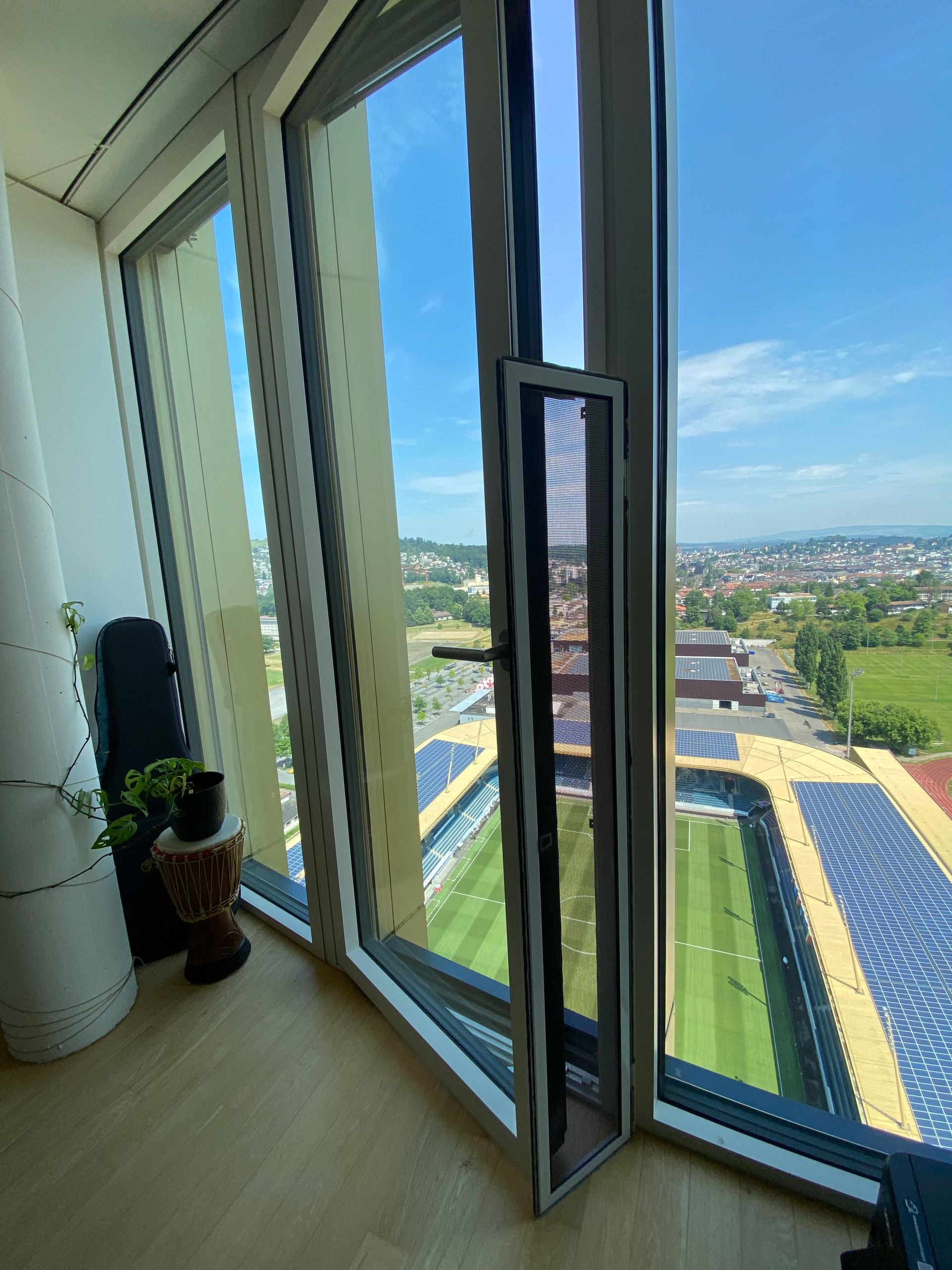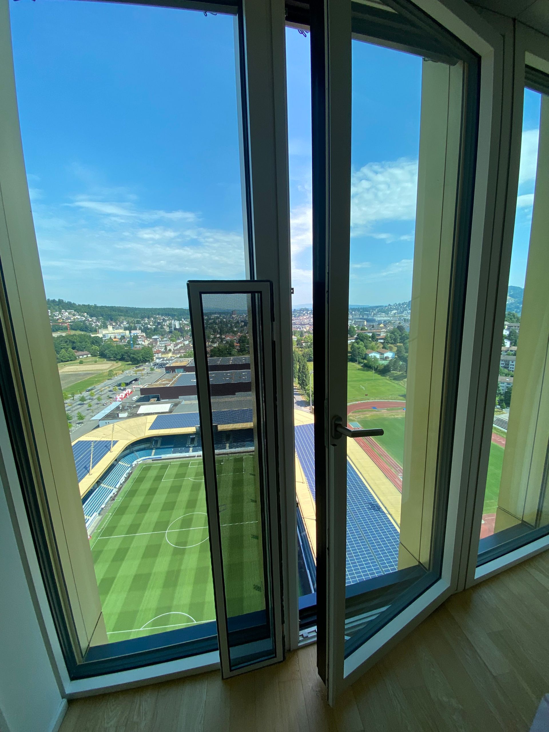 In einer Wohnung im 32. Stock in Luzern wurde ein drehbares Fenster mit katzensicherem Netz installiert, um die neugierige Katze vor möglichen Sturzgefahren zu schützen. Das innovative Projekt ermöglicht es der Katze, die Aussicht auf das Fussballstadion zu geniessen, während ihre Sicherheit gewährleistet ist.