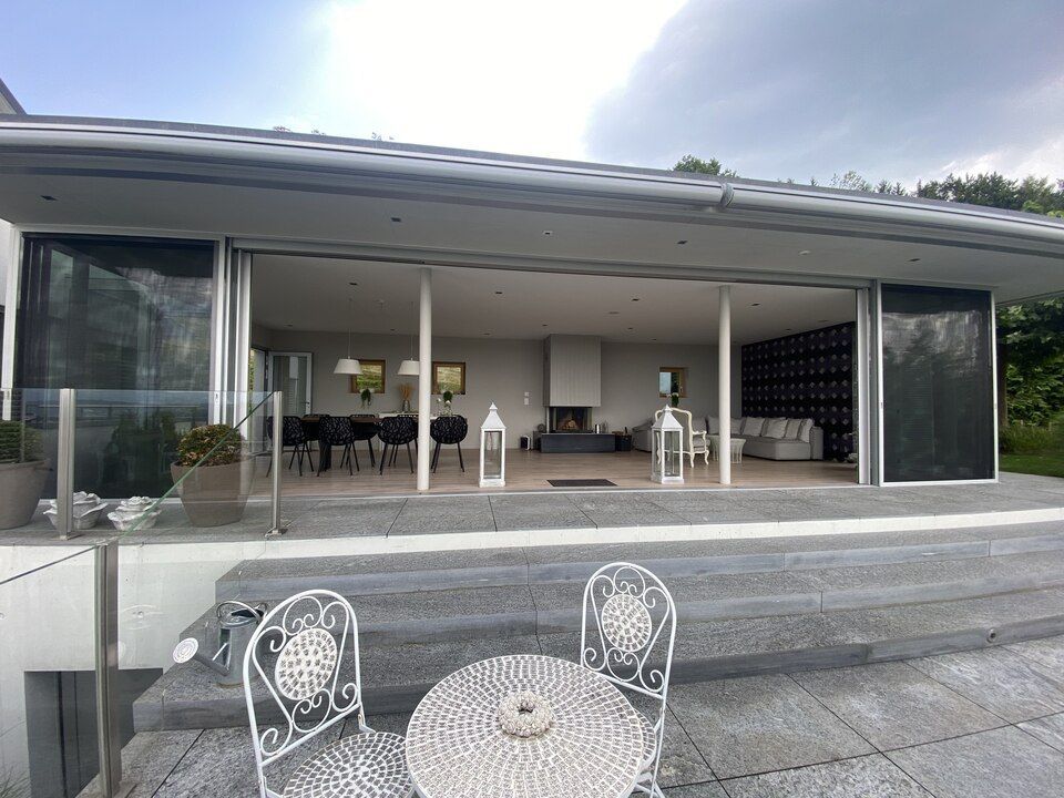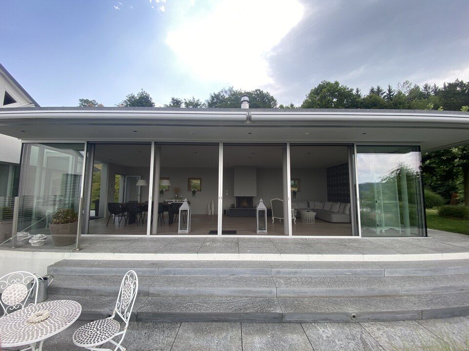 Hier sehen Sie eine massgefertigte Schiebetüre mit einer beachtlichen Spannweite von 11,80 Metern. Wir sind spezialisiert darauf, individuelle Anforderungen zu erfüllen und selbst komplexe Projekte im Bereich massgeschneiderter Insektenschutzlösungen erfolgreich umzusetzen.
